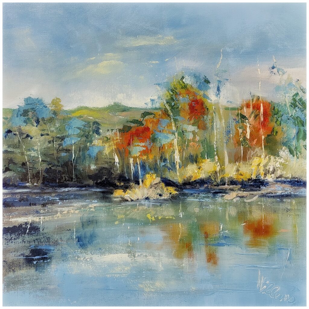 Herbstlicher Wald, Öl auf Leinwand, 30x30x3 cm