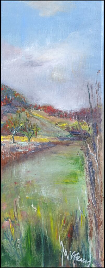 herbstliche Landschaft, Pleinairmalerei, 20×50 cm, Öl auf Leinwand