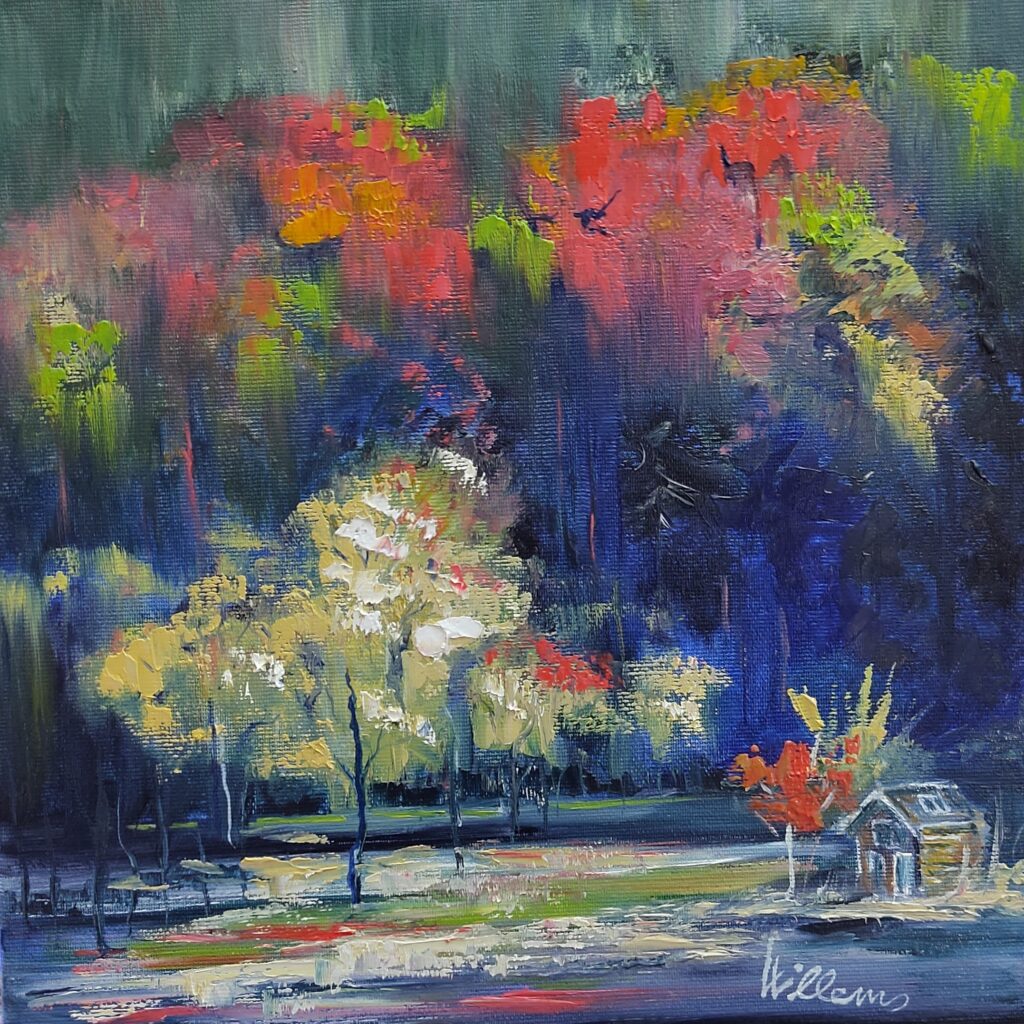 Herbstlicher Wald, Öl auf Leinwand, 30x30x3 cm