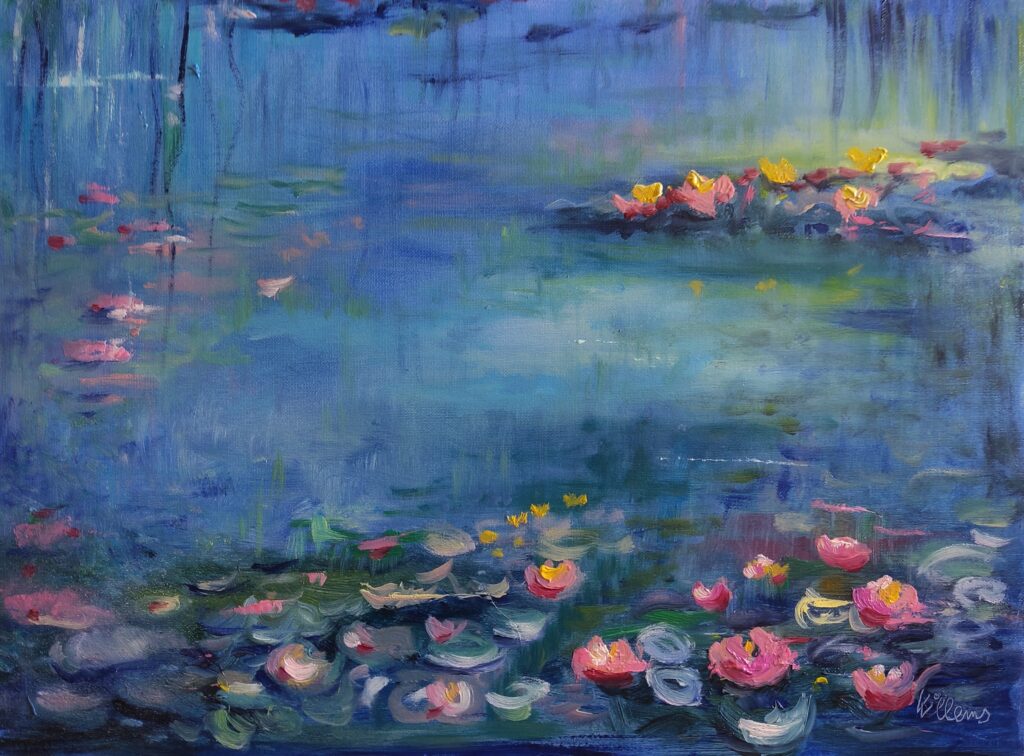 Seerosenteich nach Monet, Öl auf Malkarton, 40×30 cm