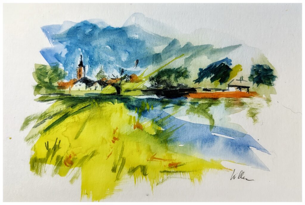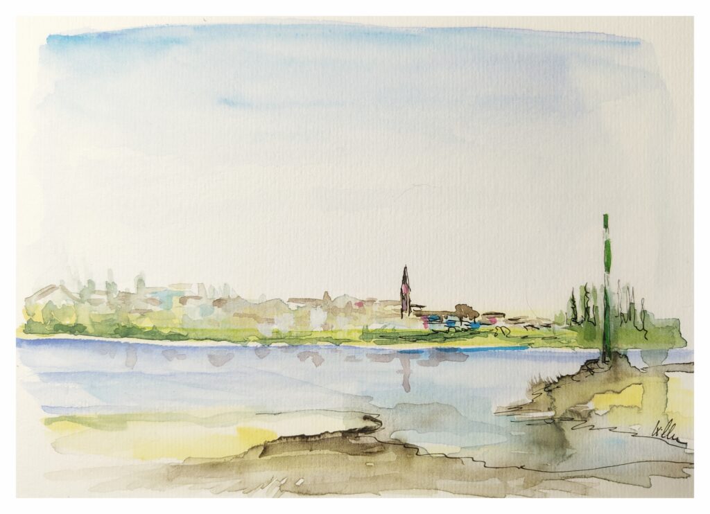 Blick über den Rhein, Wasserfarbe, Sketchbook