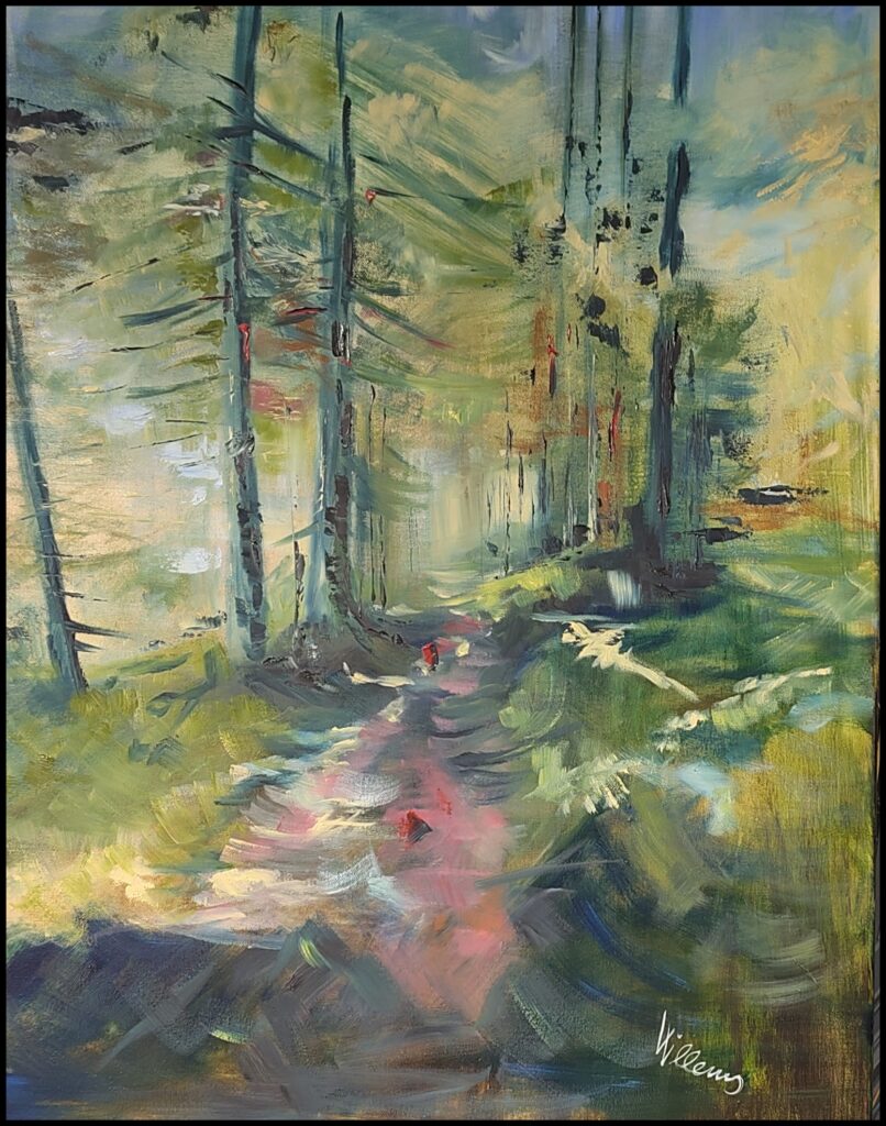 Herbstlicher Wald, Öl auf Leinwand, 30x30x3 cm